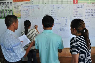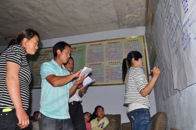 当天,该村近四十村民与儿童一起,在村委会进行扶贫开发项目的遴选。