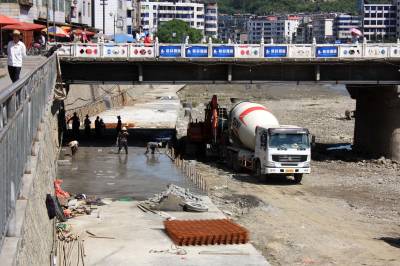 竹溪河橡胶坝二期工程完工 6月11日,施工人员正在竹溪河二期橡胶坝工程工地施工。该工程由省水利厅负责设计,十堰水利水电工程有限责任公司负责建设,是县政府十件实事之一。工程总投资565.98万元,于去年3月动工建设。截至目前,该工程基本完工,试水成功。(视界网 王忠春 摄)