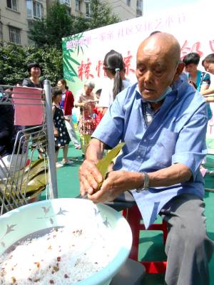 当日上午,居住在香江四期8栋的在参加唐蔡社区包棕子比赛,格外引人注目。 6月12日,是我国人民传统的端午佳节。为庆祝这个佳节,湖北省武汉市江汉区唐家墩街唐蔡社区主办了由社区居民参加的“粽情粽意邻里情深”端午节文艺演出活动。包粽子选手大PK是活动的内容之一,李学立老人闻讯后,积极主动要求参赛,现场传承中华民族的传统文化,赢得了现场观众喝彩。