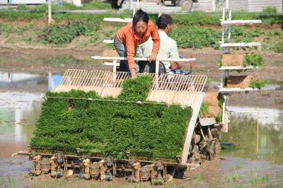 6月11日,全国种粮大户——冷集镇上集村农家妇女吴金荣正在田间用机械插秧。吴金荣在谷城农商银行近百万贷款支持下,流转农民土地1100多亩,从昔日的打工女转变成全国种粮大户,年实现收入20多万元。吴金荣说,每个人都有梦想,我的梦想就是通过自己的辛勤劳动,当好外出务工农民的“田保姆”,在希望的田野上放飞自己致富奔小康的梦想。 本报视界网马明刚摄