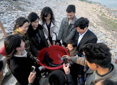 元宵节放生中华鲟2月28日,大冶市市民彭某将一条长约1米多、重达5公斤的中华鲟在长江黄石段放入江中,以此度过一个有意义的元宵节。据彭某介绍,27日,他在市场上花1000多元购买了这条中华鲟,他知道中华鲟是国家一级保护动物,于是在元宵节当日将它放归长江。图一:放入长江前与中华鲟留个影。图二:将中华鲟抬到江边。图三:将中华鲟抛入江中。图四:将中华鲟抛入江中。黄石市黄石日报摄影部邱孝威摄电话:13807232603邮编:435002