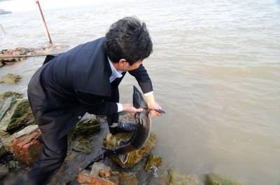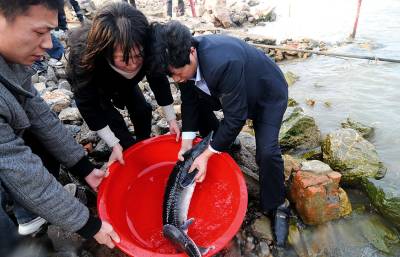 > 元宵节放生中华鲟