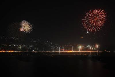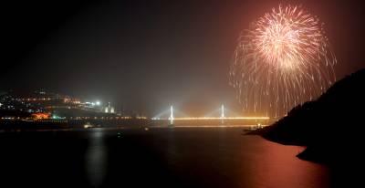 2月28日晚,三峡库区湖北巴东县《星光映峡江》元宵大型艺术焰火晚会在官渡口镇长江边举行。 晚会以排山倒海的礼花弹、五彩缤纷的盆花、绚丽的彩色瞬间花树表达全县人民手拉手、心连心共创美好未来的美好心情,突出热烈欢快、温馨浪漫、亦景亦情、和谐自然的主题,共分日月同辉新春到、满园春色新农村、开放巴东新城市、通衢大道新天地及和谐巴东新辉煌五个篇章,历时近半小时。 近几年来,巴东县紧紧抓住三峡移民和后三峡政策机遇,大力发展清洁能源、新型矿产、农产品加工和旅游经济四大产业集群,县域经济实力逐年攀升,成为湖北省综合实力进位最快的县市之一。