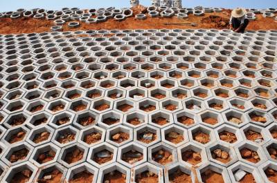 6月15日,郧县柳陂镇南水北调中线复建工程柳陂湖大桥的建设者们正在进行尾期桥面施工。柳陂湖大桥为仿古景观桥梁是南水北调中线工程交通复建项目,由17跨40米预应力T梁拱板装饰组成的拱型景观桥,全长516米,宽15米,双向两车道,设计时速60公里,总投资860万元,2011年9月开工建设,2013年6月竣工,库区畜水后形成长虹卧波景观。 夲报视界网周家山 摄