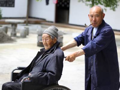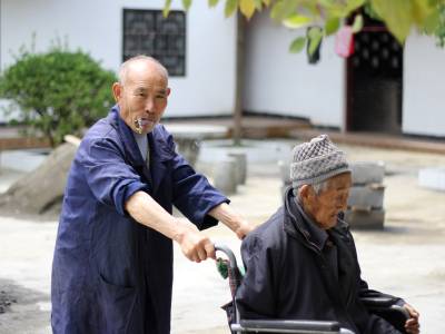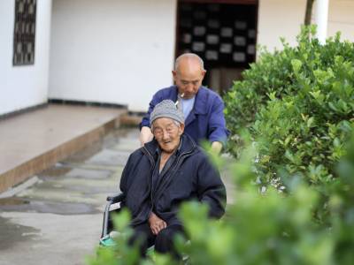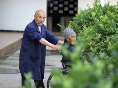 6月15日,巴东县金果坪乡石板水村向玉国推着“老父亲”在院子里晒太阳。父爱如山,深沉而厚重。在父亲节即将到来之即,不少儿女都以自己特有的方式来表达对父母的感激和敬重,以弥补平时对他们的疏忽。