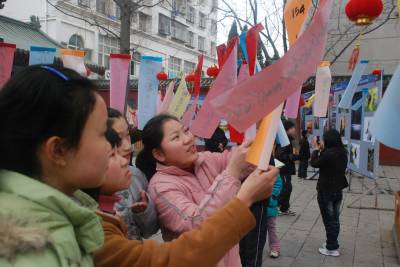猜灯谜闹元宵为庆祝元宵佳节的到来,28日应城在孔庙举办了春节期间系列活动之一的元宵灯谜有奖竞猜活动,灯谜包括古典诗词、经典著作名、趣味成语等内容,弘扬了中华传统文化,,丰富了广大市民的文化生活。图为市民踊跃参与灯谜竞猜活动。(本报经视网丁艳红摄影报道)