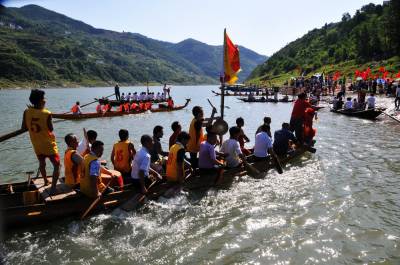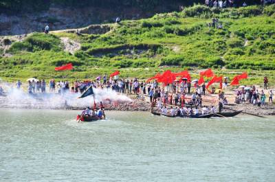 店子河村有个风俗习惯家家必须遵守,那就是每家每户的男丁春节有事可以不回家过春节,但端午节必领回家参加龙船会比赛,这是店子河村百年来一条不成文铁的规定,以彰显店子河村人丁兴旺后有传人。