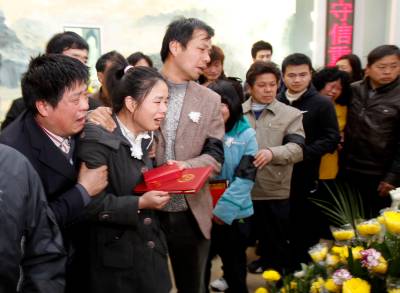 2010年3月1日,孙水林及遇难家人遗体在开封殡仪馆火化。孙东林家属及开封社会各界人士为孙水林送行。记者柯皓曲河摄