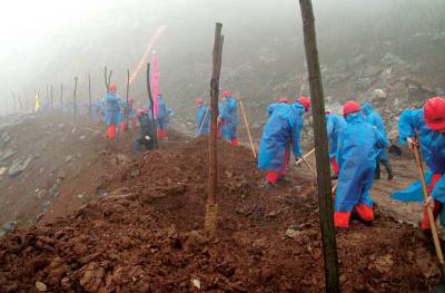 冒雨植树绿矿山