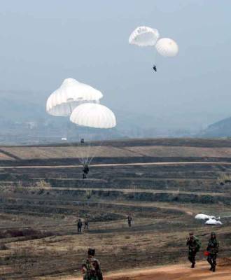 ”红色伞兵”绽放美丽奇葩”嘀—嘀—”,绿色的信号灯开始闪亮,飞机进入预定空域,800米高度,跳伞开始,”跳——”投放员手一挥,第一名跳伞员眨眼间不见了,伞兵批次空降,一时间,朵朵纯洁的伞花绽放在祖国蓝天,犹如神兵天降,3分钟后,新战士们成功着陆,脸上露出了灿烂的笑容。2月27日,笔者来到大别山腹地某军用机场,用镜头记录驻随空降兵某部五百余名新兵虎年首次示范跳伞取得圆满成功的精彩瞬间。当日上午,”红色伞兵”某军用机场,战旗猎猎、军号嘹亮,数架运输机编队起飞,把数百名空降兵战斗员投向预定”战场”。数百名官兵整齐列队,整装待发,勇往直前,迎接新年度首次空降考核,新战士们摩拳擦掌,虎气冲天。平日里,他们冒严寒,顶酷暑,在训练场上挥汗如雨,高难度标准下锤炼;在高强度任务中砺练,提高了空降兵战斗员的基本技能,练就空降兵独有的钢臂铁腿。为了这一刻的绽放,空降兵们毫无惧色的勇气在祖国蓝天翱翔。本报视界网孙清军杨文明摄影报道