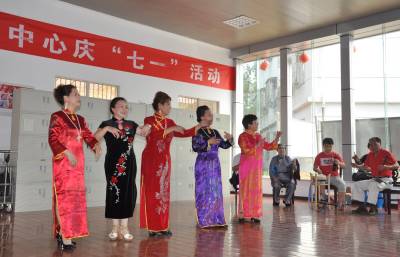 6月22日,恩施市六角亭街道办事处书院社区剧社、问月文艺宣传队、书院社区宣传队等3个群众团体的文艺爱好者们,在社区文化活动中心上演了一台自编自演的文艺节目,包括铜铃舞、莲香、摆手舞、合唱、京剧等多种形式,以此庆祝中国共产党成立92周年。(本报视界网 周光兵 摄)