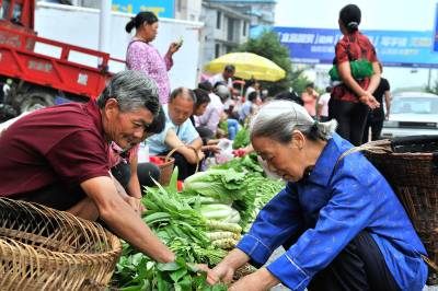 6月24日,人们在宣恩县椒园镇集市上赶乡场。