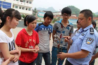 为帮助广大青少年充分认识毒品的危害性,教育学生珍惜生命远离毒品,世界禁毒日前夕,郧县公安局鲍峡派出所所长刘满清来到郧县鲍峡镇初级中学,为学生们上了一堂“珍惜生命 远离毒品”的法制教育课。刘所长通过紧密联系近年来全国各地青少年受毒品危害的典型案例,通俗易懂的向同学们介绍相关科学知识和法律知识.。同时还要求同学们广泛开展小手拉大手活动,回家后向家长宣传有关禁毒知识。 图为刘所长向学生介绍毒品的危害性。 ( 湖北省郧县鲍峡镇初级中学 张自明 )