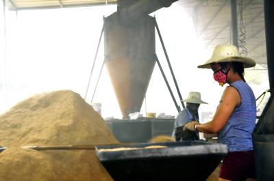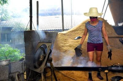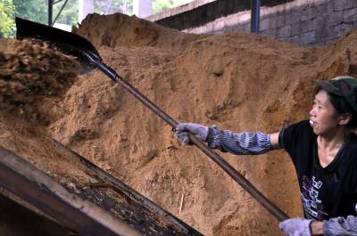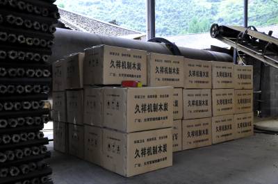 6月23日来凤县大河镇官城村的留守妇女在该村的“永祥机制木炭厂”加工机制木炭。