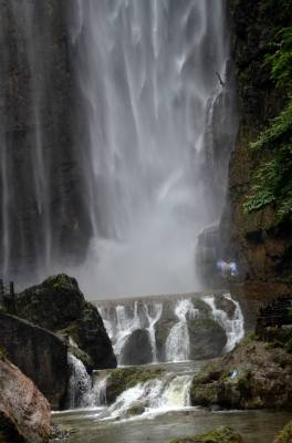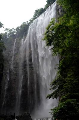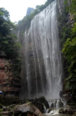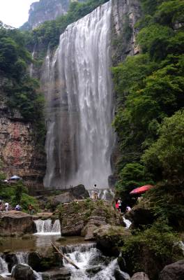 三峡大瀑布即白果树瀑布,它距宜昌市34公里,位于宜昌县晓峰乡泰山庙。在长约5公里的峡谷中,绝壁夹天,深潭无底,飞泉竟悬,一条主体瀑布和若干分支瀑布形成了气势磅礴的瀑布群,主体瀑布宽约数十米,清泉从百余米高的陡峭山崖飞流直下,接天连地,水天雾海,蔚为壮观,即使久旱不雨,这里依然是飞泉不绝,景区山环水绕、瀑布飞流,小桥飞渡,长虹卧波,久远的地质年代,迷人的峡谷风情,神奇的民间传说,调皮的野生猕猴,令人深深着迷。游览其间,趣味盎然。三峡大瀑布大大小小有30多道,逆水而行,虎口瀑、一线瀑、珍珠瀑、丫瀑、连环瀑、五扇瀑、花样瀑等形态各异的瀑布接踵而来,有的薄如蝉翼,飘飘洒洒,宛如仙女散花;有的如断线珍珠,飞花泄玉,晶莹剔透,惹人怜爱……。