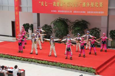 2013年6月25日,湖北省宣恩县直机关干部职工第九套广播体操大赛在宣恩县行政办公大楼内庭举行。
