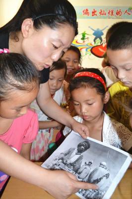 6月25日,湖北省郧县柳陂镇中心小学杨慧老师在给一年级学生讲毒品的危害。
