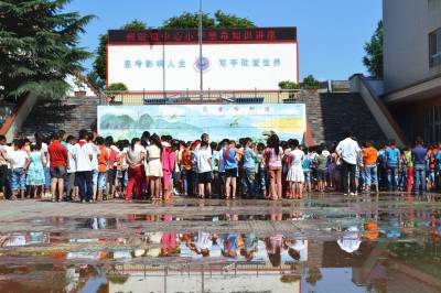 6月25日,在今年“国际禁毒日”来临前夕,湖北省郧县柳陂镇中心小学不顾雨后场地积水对学生进行禁毒知识宣传。