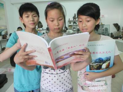 省优校本教材受青睐 6月25日,十堰市郧县青曲镇初级中学学生正阅读湖北省优秀校本教材——《山青水曲“郧县人”的家》。该校以汉江流域为主线,以青曲弥陀寺远古“郧县人”遗址为中心的方圆百余里的“汉江自然、人文、历史文化圈”内挖掘素材,整理编写了《山青水曲“郧县人”的家》、《璀璨的汉江文化》和《石头与文化》三套校本教材,并把地方课教材纳入课程计划予以实施。教材图文并茂的向学生展示了汉江奇石的自然魅力,勾起了学生对汉江文化的神往,以及对人类历史的追思。 (本报视界网 张传郧 摄)
