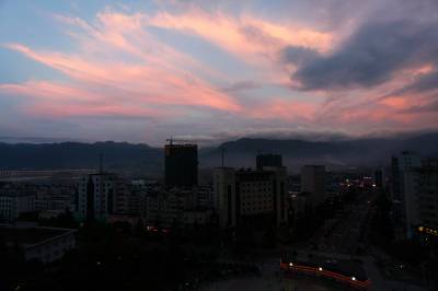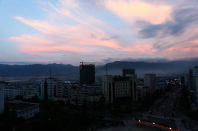 大雨后的晚霞格外艳。6月25日晚拍于三峡坝上秭归县城。