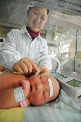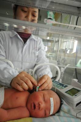新生儿听力筛查把好防聋第一关3月1日,一名刚刚出生的新生儿正在宜昌市中心人民医院进行听力筛查。3月3日是第十一个全国爱耳日,宜昌市中心人民医院积极开展新生儿听力筛查工作。据统计,听力障碍在正常新生儿中的发病率为千分之一至千分之三,而重症监护病房抢救的新生儿,其听力障碍的发病率可高达百分之二至百分之四,儿童耳聋防治成为社会关注的重点。宜昌市中心人民医院但军摄