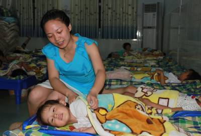 6月21日,襄阳市襄州区中心幼儿园开展“夜宿幼儿园”活动。图为该园副园长张曼丽在为小朋友盖毯子(赵永强 摄 电话:18727027717)