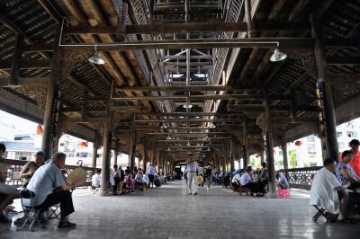 图文:风雨桥上享清凉 6月27日,人们在宣恩县风雨桥上度夏纳凉。在整个恩施州地区,风雨桥既是交通要道,也是人们遮阳避雨、度夏纳凉的去处。炎炎夏日,搭建在河道上的风雨桥上凉风习习,人们三五成群,相约在桥上纳凉,惬意悠闲。(本报视界网 戴俊 摄)