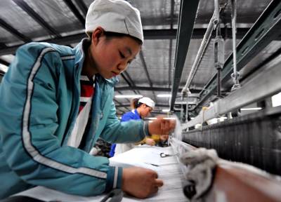 视界网签约摄影师:宋文。2日,宣恩县鑫宜纺织公司纺织车间机声隆隆,车间里100余名女工各司其职。鑫宜纺织是劳动密集型外贸出口企业,自去年底以来开始免费培训工人,使一批返乡女工选择在家门口就业,使企业免受”用工荒”侵袭。作者单位:宣恩县新闻中心联系电话:13986850929