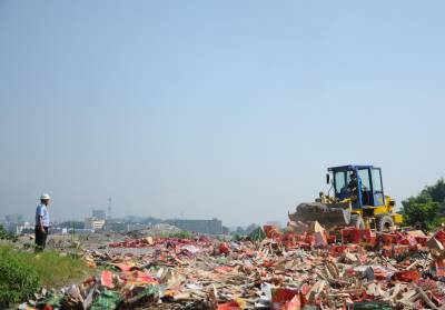 6月28日,恩施市对在打非治违过程中收缴没收的一批非法生产经营的烟花爆竹进行了集中销毁。