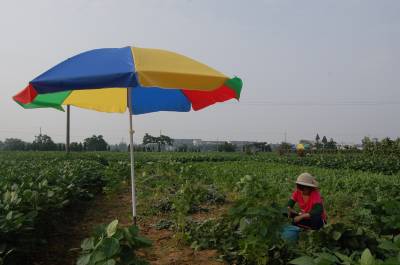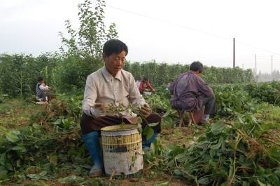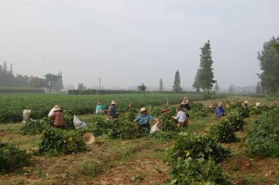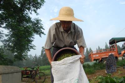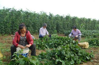 云梦县是蔬菜生产大县,其中毛豆俏销四方。今年云梦毛豆获得丰收,产品销往武汉、河南、河北、内蒙、辽宁、吉林、黑龙江等地。图为6月28日云梦城关、隔蒲潭等乡镇菜农采摘毛豆供应市场。视界网 陈保忠 摄