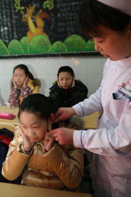 3月2日,湖北省襄樊市第一人民医院耳鼻咽喉科医护人员走进米公小学课堂,向学生们宣传耳病的预防知识,重点普及耳保健操的基本做法,促进青少年养成良好的爱耳护耳习惯,以减少各种耳病的发生,迎接今年3月3日全国爱耳日的到来。据专家介绍,经常做耳保健操能很好地改善耳部血液循环,防治耳鸣和耳聋的发生,并起到保健和美容的作用。