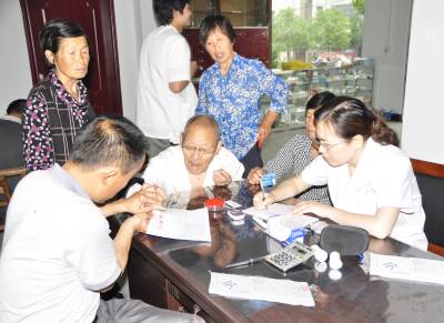 6月28日,松滋市刘家场镇卫生院“青年医疗自愿服务队”携带医疗器材和药品,深入到龙潭桥村开展义务巡诊,免费帮助群众进行了心电图、血糖、血压、血脂等常规测量和检查,并为一些行动不便的“留守老人”建立了健康档案,深受广大群众的欢迎。 图为医疗自愿服务队队员为该村4组杨书栋老人采集血样。 张元银 摄