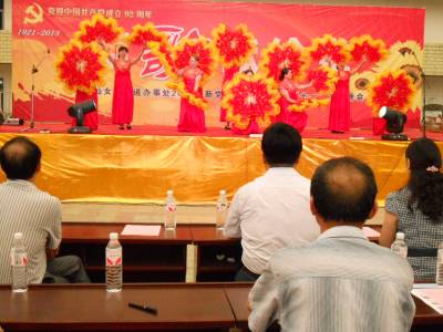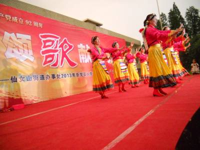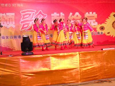 6月28日,汉川市仙女山街道办事处庆祝中国共产党成立92周年“七·一”文艺节目《颂歌献给党》在办事处广场隆重演出,来自该办事处各社区及计生、教育等部门单位参加了演出。演出集大合唱、表演唱、音乐剧、歌伴舞等于一体,热情讴歌中华民族实现伟大复兴的百年奋斗历程,生动再现中国共产党的丰功伟绩和光辉形象,唱响共产党好、社会主义好、改革开放好、伟大祖国好的时代主旋律。 签约摄影师 邹开建 摄 通联:汉川市信访局 电话:13197382491