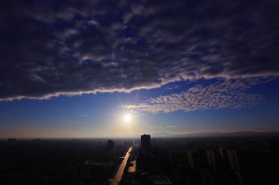 昨晨(29日),新洲区上空惊现“帷幕”奇观:约5:38时,笔者登上新洲邾城一幢29楼顶层看到,东方初升的太阳喷薄而出,碧空如洗,朝霞满天,但距离日出数公里的上方,却被厚厚的云层整齐地遮盖,似一道幕帘将天空一分为二,至6:05分左右乌云慢慢散去,整个天空逐渐现蓝天白云,过程持续20多分钟。