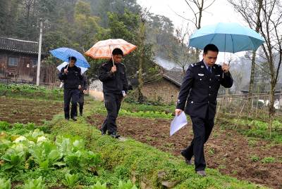 视界网签约摄影师:宋文。3日,宣恩县公安局椒园派出所民警冒雨穿行于乡间小路上,把有关防火、防盗、防骗以及交通安全等告示送到农民手中,提醒农民在春耕生产期间的注意事项。同时进村入户,对农村不稳定因素进行排查,并化解农民之间因山权地界等导致的矛盾纠纷,以实际行为维护即将到来的春耕生产的正常秩序。作者单位:宣恩县新闻中心联系电话:13986850929