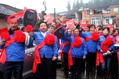 湖北全力公司给员工发红包 30余辆小车重奖一线工人