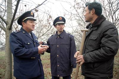 3月2日,云梦县工商局执法人员在义堂镇平石村养殖大户陆春发的果园向其宣传注册农产品商标的好处。新春伊始,该局积极开展商标进村、定点联系、跟踪帮扶等活动,帮助农民运用农产品商标走上致富路。目前,全县累计注册农副产品商标69件,其中,有7件市知名商标,3件省著名商标,有效地提升了农产品附加值。(本报视界网王云清摄)作者通联:云梦县工商局王云清邮编:432500电话:13972657005