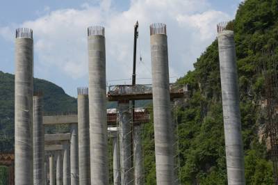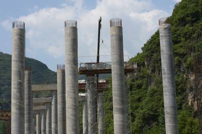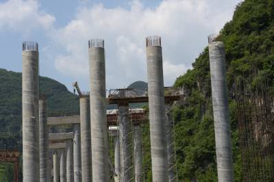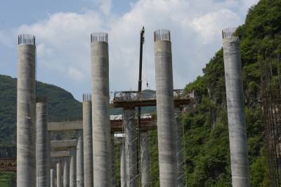 7月6日,建设工人在保宜高速公路车峰坪段特大高架桥桥墩上作业。 保宜高速公路在襄阳境内共有75.6公里,分为10标段作业。目前,整个工程建设进展顺利,各标段工程建设如火如荼。 (本报视界网 陈泉霖 杜鹃 摄) 电话:13476356829