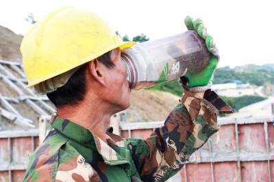 渴 图为:7月9日,湖北省谷竹高速公路竹溪县水坪段人行天桥施工现场。