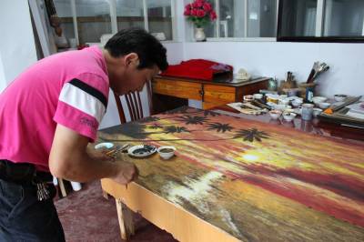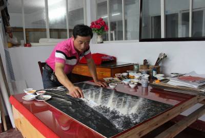 通过自己的努力和摸索,田小黑的作品越来越好,多次参加各级比赛、展览,有不少来自邻省的绘画爱好者慕名而来买画,镇上部分单位的宣传墙上及企业老板家中也有他的作品。目前,田小黑正在创作一幅名叫《力量》的砂画,准备参加恩施州建州三十年美展。