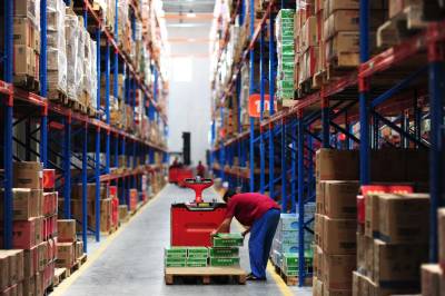 昨日,在位于郧县的寿康永乐商贸物流园仓库内,工人正在装运货品。据了解,寿康永乐商贸物流园总投资约3亿元,占地总面积250亩,项目全部建成后将成为鄂西北最大的综合性商贸物流园,可实现年销售收入50亿元。(全正 摄)