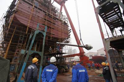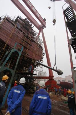 宜昌经济增长创造”宜昌速度”3月4日,宜昌市西坝船厂工人正在安装重约12.9吨的尾轴。目前在建的8艘出口万吨轮进展顺利。据了解,去年,宜昌GDP实现1245.6亿元,增长15.1%,创造了”宜昌速度”。今年,随着一批大型项目的建设,将为全市GDP保持13%的增速奠定坚实的基础。本报视觉网黄翔摄
