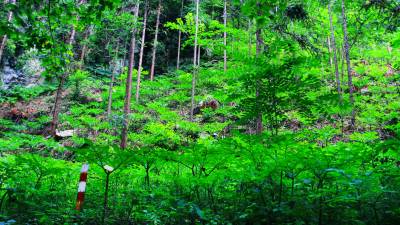 岱王沟境内植被以原始及次生林为主,地势山峦叠嶂,沟谷交错,林木参天覆地,物种资源丰富,野生动植物资源呈多样性分布。经调查核实,境内分布野生动物100多种类,国家级、省级保护珍稀动物达60多种,常见的有猕猴、黑熊、大鲵、飞虎、大灵猫、小灵猫、林麝、斑羚等;主要野生动植物有59科,293种。现己查明5个猕猴种群,总数量约千只。岱王沟的水明如镜,自然繁衍的鱼群竞欢,是个集科考、旅游、探险于一体自然生态区,且有优质煤炭、板石等丰富的矿产资源待招商引资开发。2009年以来,该场在大力推进特色产业地推动下,自筹资金100余万元新建栏河养殖、繁育大鲵基地,专人专责管理。仅2013年上年就实现繁殖大鲵苗152尾,截止目前,己培植改造板栗基地1000余亩,野茶200亩,杜种300亩,林下种植魔芋250亩。投资100万元新修、硬化林农公路,改造福利院综合楼等基础设施建设,(本报视界网 温大树 摄)