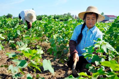 昨日,鄂州市杜山镇路口村棉农正在整理棉花苗。棉花种植是杜山镇的农业主导产业。今年该镇种植棉花1万5千亩,占全镇土地种植面积的近一半。棉花收入占该镇农民农业收入的70%以上。该镇为棉农“一条龙”服务,前期引导种植选种,中期提供技术支持,后期疏通销售渠道,帮助棉农致富。 郑博 摄