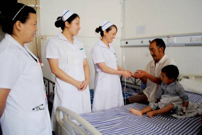 7月12日,南漳县中医院妇儿科护士长庄玉红将1375元爱心款递到了患儿陈希望的父亲手中。今年5岁的患儿陈希望是南漳县李庙镇胡家坪村人,家庭非常困难,前几天因患肺炎到该院就治,就治过程中,医护人员了解到其家庭处境后,科室医护人员主动为其捐款。考虑到其家庭特殊,医院决定为其减免医疗费用,并为后续治疗提供帮助。(通讯员 窦武 晏光辉/摄)