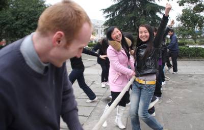 虽然离三八妇女节还有几天,但恩施职业技术学院的女生们却提前感受到了节日气氛,一个属于女大学生的节日在高校里正悄然走红,那就是3月7日的”女生节”。3月4日,恩施职业技术学院举行喜迎”女生节”暨纪念国际妇女节100周年活动,该校外教戴蒙恩、默利森·罗伯特与学生一起拔河跳绳,喜迎”女生节”和”国际妇女节”的到来。