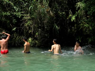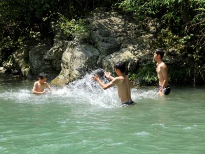 7月12日,巴东县金果坪乡金坪村殷家河里,几个游泳爱好者正在游泳、嬉水。近日湖北持续高温天气,不少农村游泳爱好者纷纷跑到河里去游泳,嬉水。近段时间,各地野泳导致溺水身亡的事故不断,希望孩游泳爱好者从中吸取教训,珍惜生命,远离野泳。