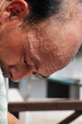 空调安装工刘久今年46岁,这几天成了抢手货,每天等待安装空调的客户排成了队,但他一人一天也只能安装6台空调,安装空调大都在楼上非常危险切汗流浃背,但刘师傅己经习以为常让每一个客户家庭满意,最后还要教会客户使用遥控器,客户签字才是对他安装质量的认可。他们就是这样每天穿行在大街小巷和楼上,为城乡许许多多的客户送去清凉风。