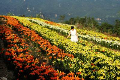 三峡夷陵百合花争艳盛开 山区田园风光引来游人