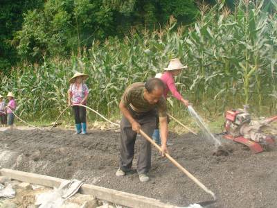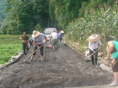 2013年7月14日,宣恩县珠山镇封口坝村6组村名冒酷暑,顶烈日、战高温铺筑油路,让村到该组350米公路黑色化,解决全组村民行路难、孩子上学难。图为:村民们劳动火热场面感动大家!